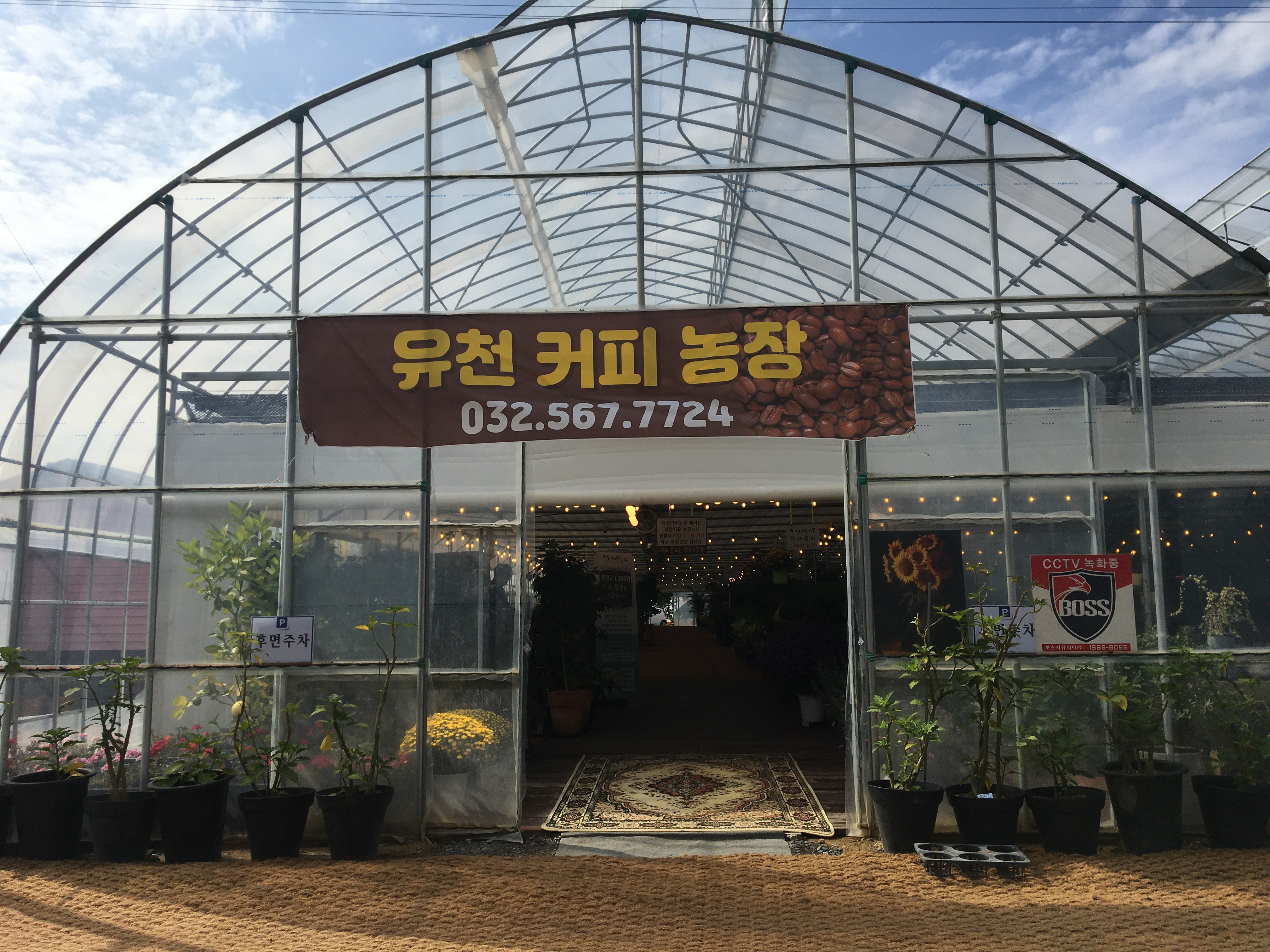 유천커피농장 비닐하우스 카페에요