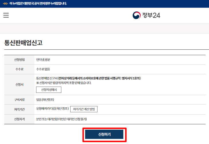 민원24 에 통신판매업 신청하러 가기를 클릭하시면 통신판매업 사이트로 이동합니다.