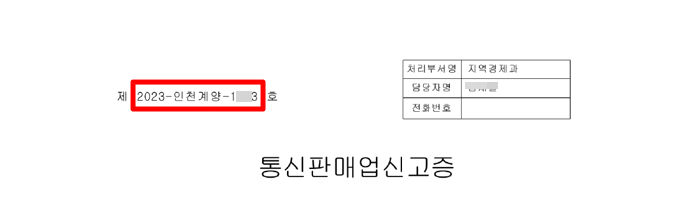 통신판매업 신고번호는 아래와 같이 제~~~~~호 가운데가 신고번호 입니다.